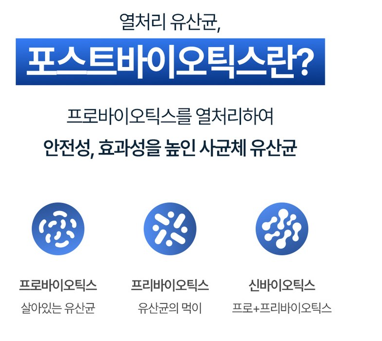 - 열처리 유산균 (포스트바이오틱스 EF-2001): 이 제품의 핵심은 무려 7.5조 셀이 함유된 열처리 유산균입니다. 살아있는 균(프로바이오틱스)을 열처리하여 사균체 형태로 만들었기 때문에 위산과 담즙에 강해 장까지 안전하게 도달합니다.