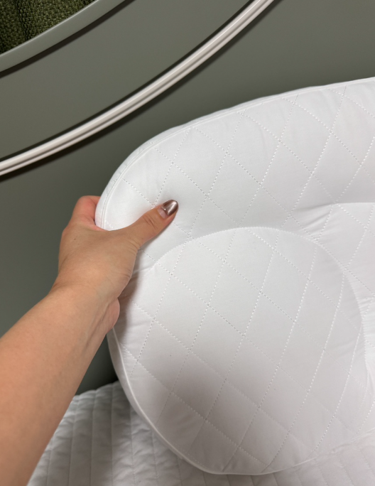 - 뛰어난 탄성 및 쿠셔닝: 너무 딱딱하지도, 너무 무르지도 않은 '적당함'이 이 베개의 가장 큰 강점입니다. 처음 베개에 머리를 댔을 때 목을 부드럽게 감싸는 느낌이 인상적이었죠. 목과 어깨를 견고하게 받쳐주어 수면 질 개선에 큰 도움이 되었습니다.